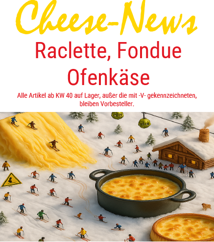 Cheese News 03/2025 Für die dritte Ausgabe der Cheese News haben wir uns passend zu der kalten Jahreszeit das Thema „Raclette, Fondue, Ofenkäse“ ausgesucht. Genießen Sie die kulinarische Reise durch unser Angebot und lassen Sie sich inspirieren! Viel Spaß beim Stöbern! (Einfach auf das Bild klicken und durchblättern)