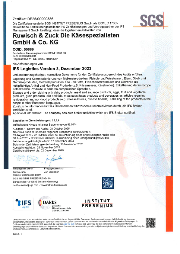 Wir sind IFS Logistics und Broker zertifiziert und haben uns als Ziel gesetzt jedes Jahr besser zu werden.