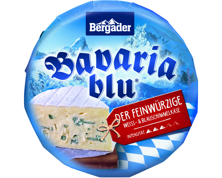 | Bavaria blu | Edler Weichkäse mit Weiß- und Blauschim- mel, natürlich-cremig, zart und charak- tervoll im Geschmack. | Käsegruppe: Weichkäse mit Weiß- und Blauschimmel Land: Deutschland Milch: Kuhmilch Region: Bayern