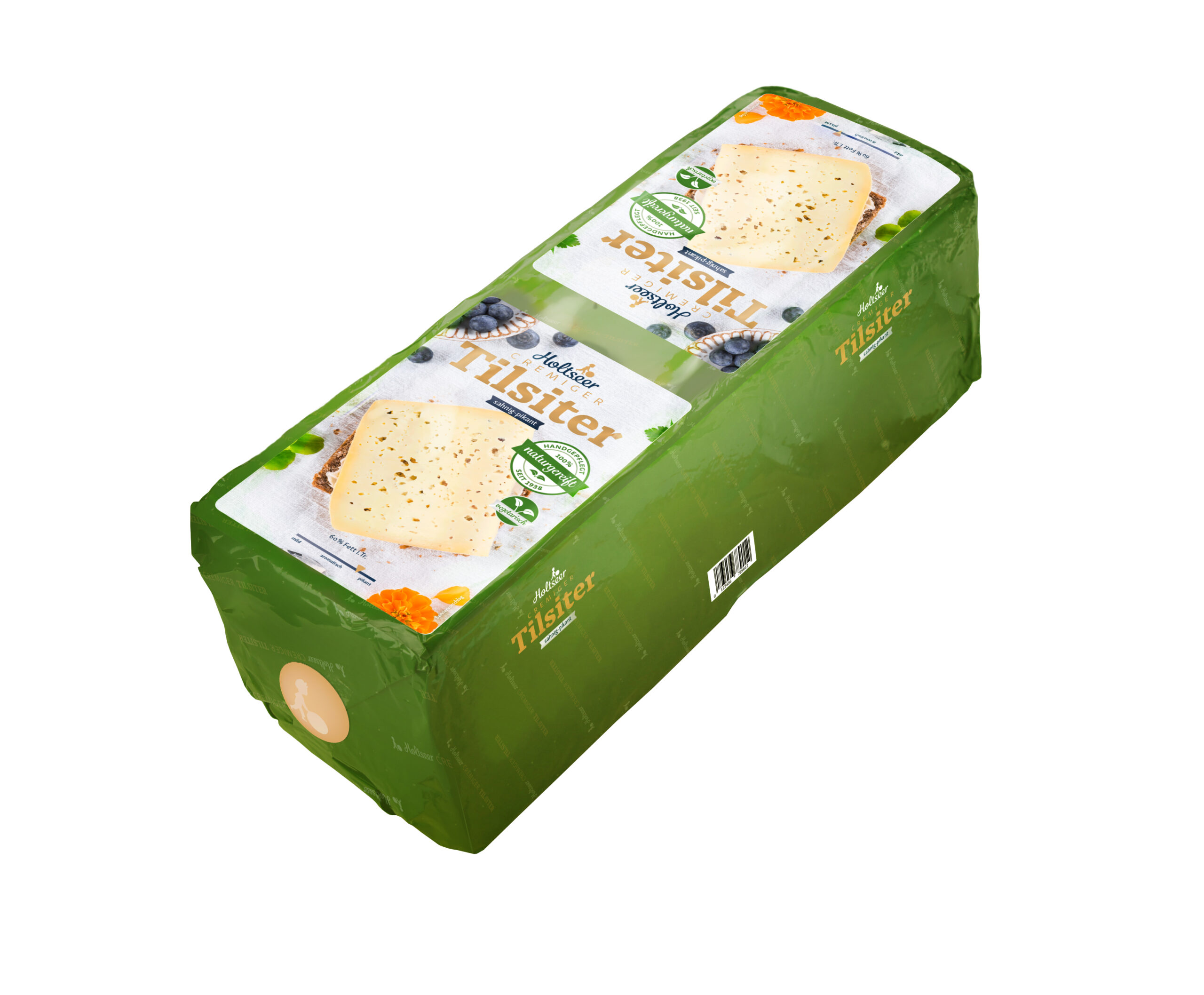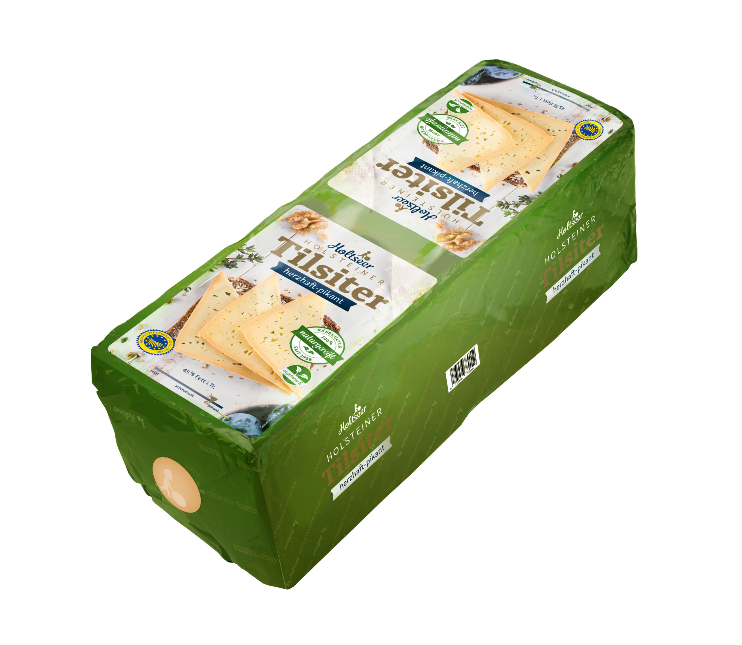 | Tilsiter Nr.8 Scharf | Er reift und lagert mit viel Pflege 8 Mo Die Naturrinde sorgt für Geschmack. Ein Käse für "KENNER" - deftig und barsch! | Geschmack: kräftig Milch: Kuhmilch Region: Schlesw.-Holst. Käsegruppe: Holsteiner Tilsiter g.g.A. / deutscher Schnittkäse Sonstiges: laktosefrei Land: EU