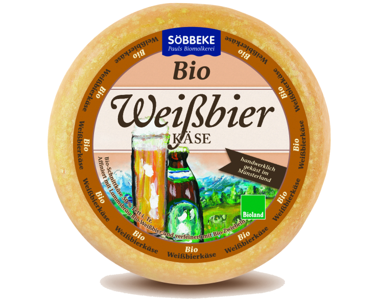 | Bio Weißbierkäse | Münsterländer Schnittkäse mit Röstzwie- beln verfeinert und mit Lammsbräu Weiß- bier affiniert. Handwerklich gekäst. | Käsegruppe: Bio-Schnittkäse mit Zwiebeln, affiniert mit Weißbier Land: Deutschland Milch: Kuhmilch Region: Münsterland
