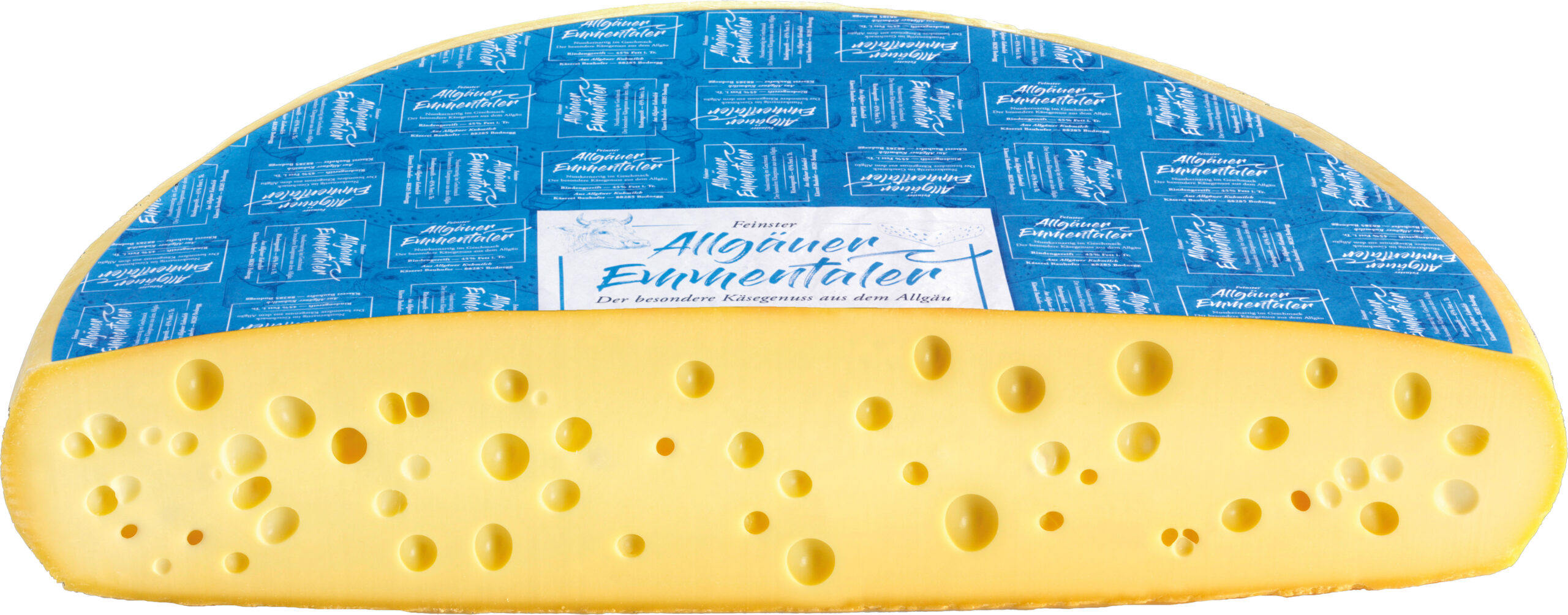 | Allgäuer Emmentaler Laib | -> VERKAUF ÜBER SCHNEIDETISCH MÖGLICH <- Der Käse reift 90Tg. Bekannt durch die Naturrinde und den kirschgroßen Löchern. | Käsegruppe: Allgäuer Emmentaler g.U. / deutscher Hartkäse mit Rohmilch Land: Deutschland Milch: Kuhrohmilch Region: Allgäu