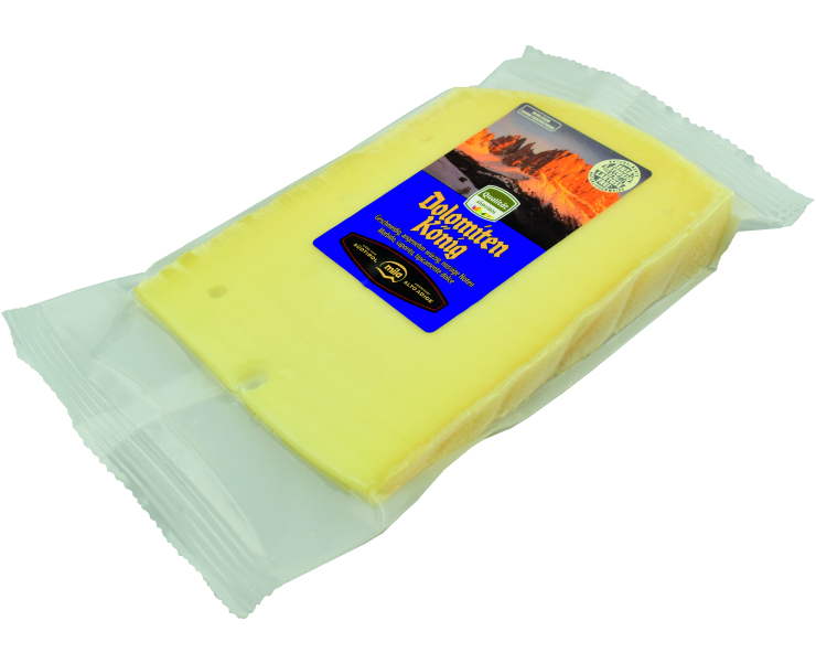 | Dolomitenkönig | Eine Spitzenqualität aus Südtirol. 2Mo. gereift. Nach dem höchsten Berg benannt Interessanter Käsetyp. Neue Aufmachung. | Käsegruppe: Schnittkäse Land: Italien Milch: Kuhmilch Region: Südtirol