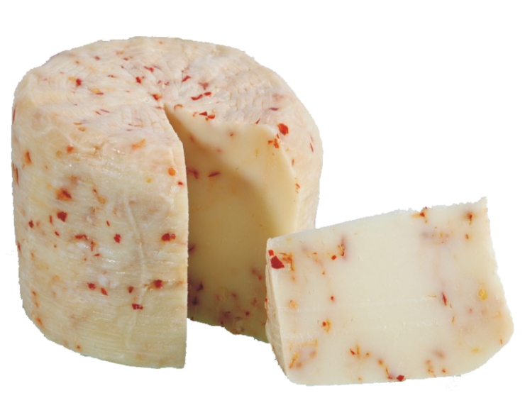 | Caciotta mit Peperoni | Käsezuber. aus 80% Kuh- und 20% Schafs- milch mit Peperoncino (scharfe Paprika- sorte) verfeinert. Mind.1 Woche gereift. | Käsegruppe: Käsezubereitung mit Peperoni aus 80% Kuhmilch und 20% Land: Italien Milch: Kuh- und Schafmilch Region: Marken