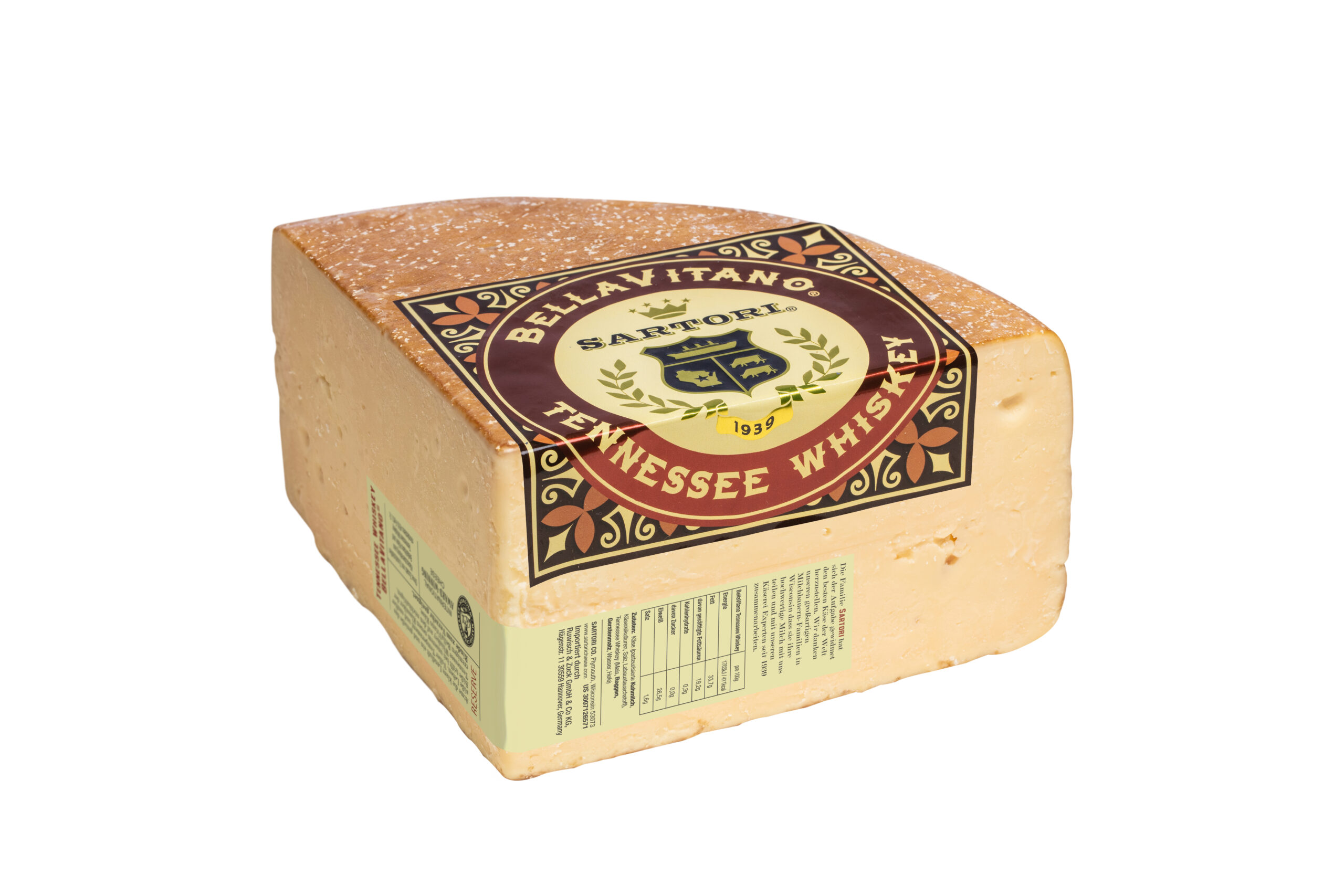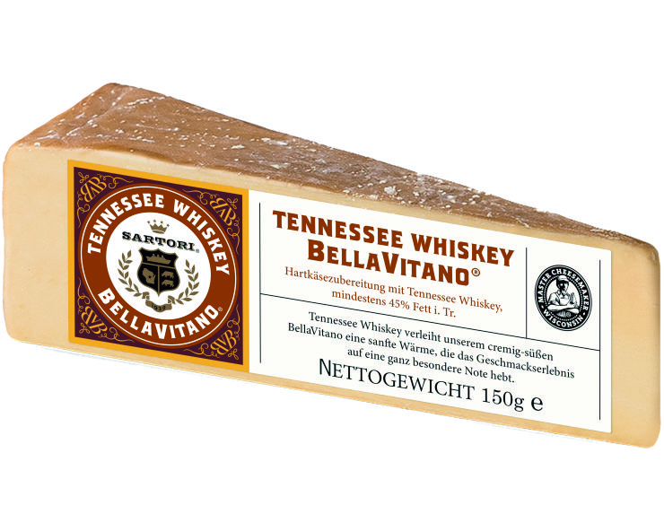 | BellaVitano Whiskey | Amerikanischer Einfallsreichtum - Handge machte Produktion - In Höhlen gereift - Per Hand eingerieben - hier mit Whiskey. | Käsegruppe: Käsezubereitung aus BellaVitano Käse und Tennessee Whiskey Land: USA(Wisconsin) Milch: Kuhmilch Region: Wisconsin